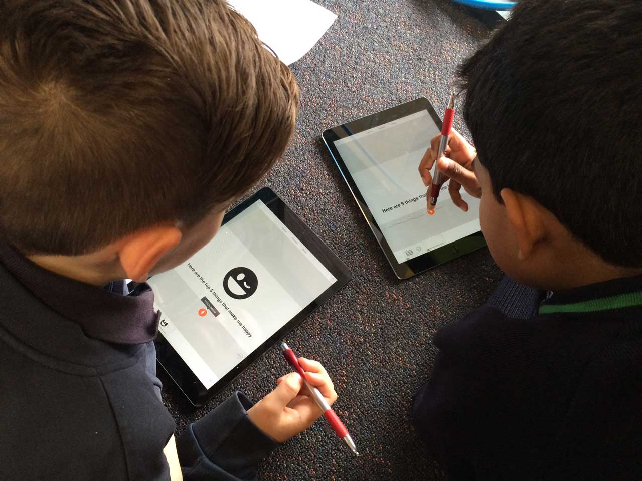 The morning was all about encouraging the students to think about what makes them happy. After some brief instructions and planing (Pre-Production) each student worked with a partner to build an Adobe Voice video outlining the top 5 things that make them happy.