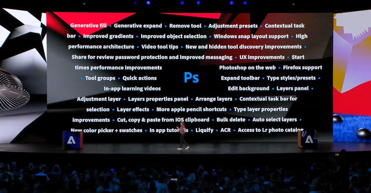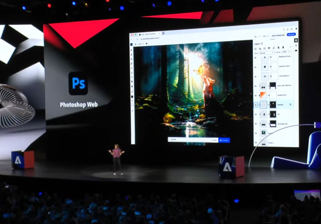 She also highlighted the recent launch of Photoshop on the Web (which also features Firefly tools such as generative fill and generative expand) and she shared a clip that outlines what is new in Lightroom.