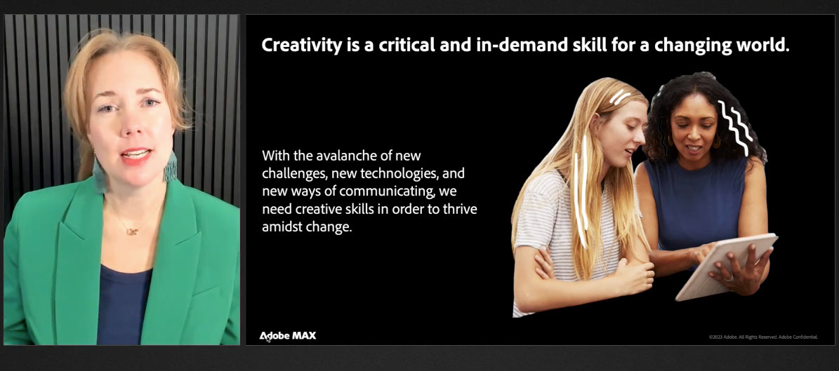 Ashley Still took to the stage and said that Adobe believes that creativity is a uniquely human trait and that AI is a tool for creatives to use to help enhance their work. She said that;