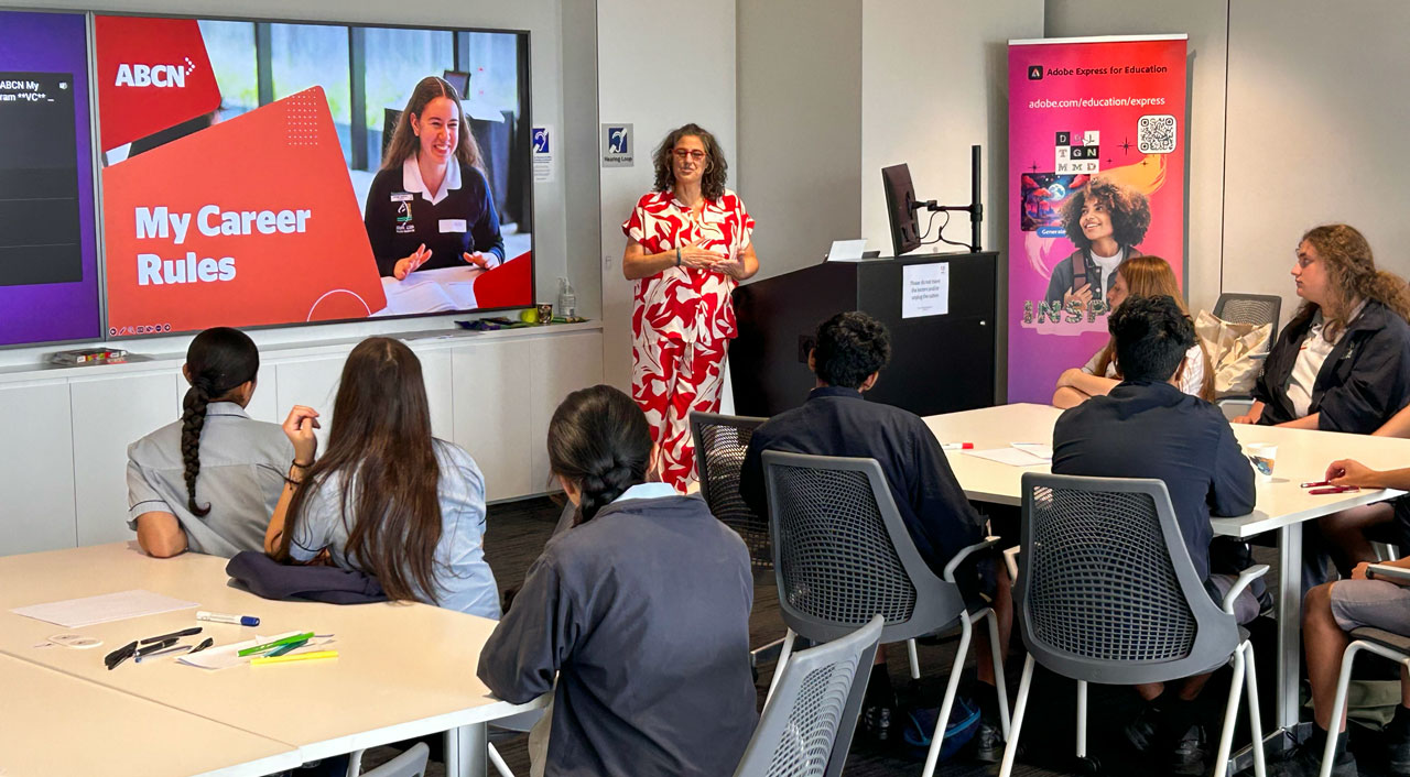 Braybrook College in Melbourne’s west was invited by ABCN and Adobe to bring a group of students to the Adobe office in South Melbourne for a My Career Rules program.