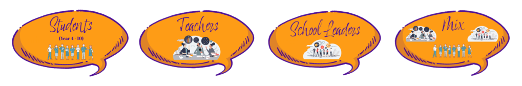 For Students (Year 4 – 10), Teachers, School Leaders or a mix of all three.