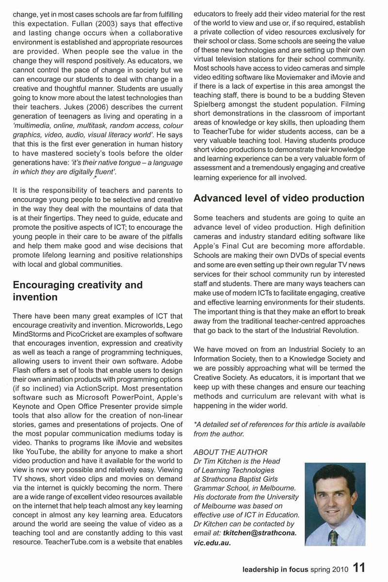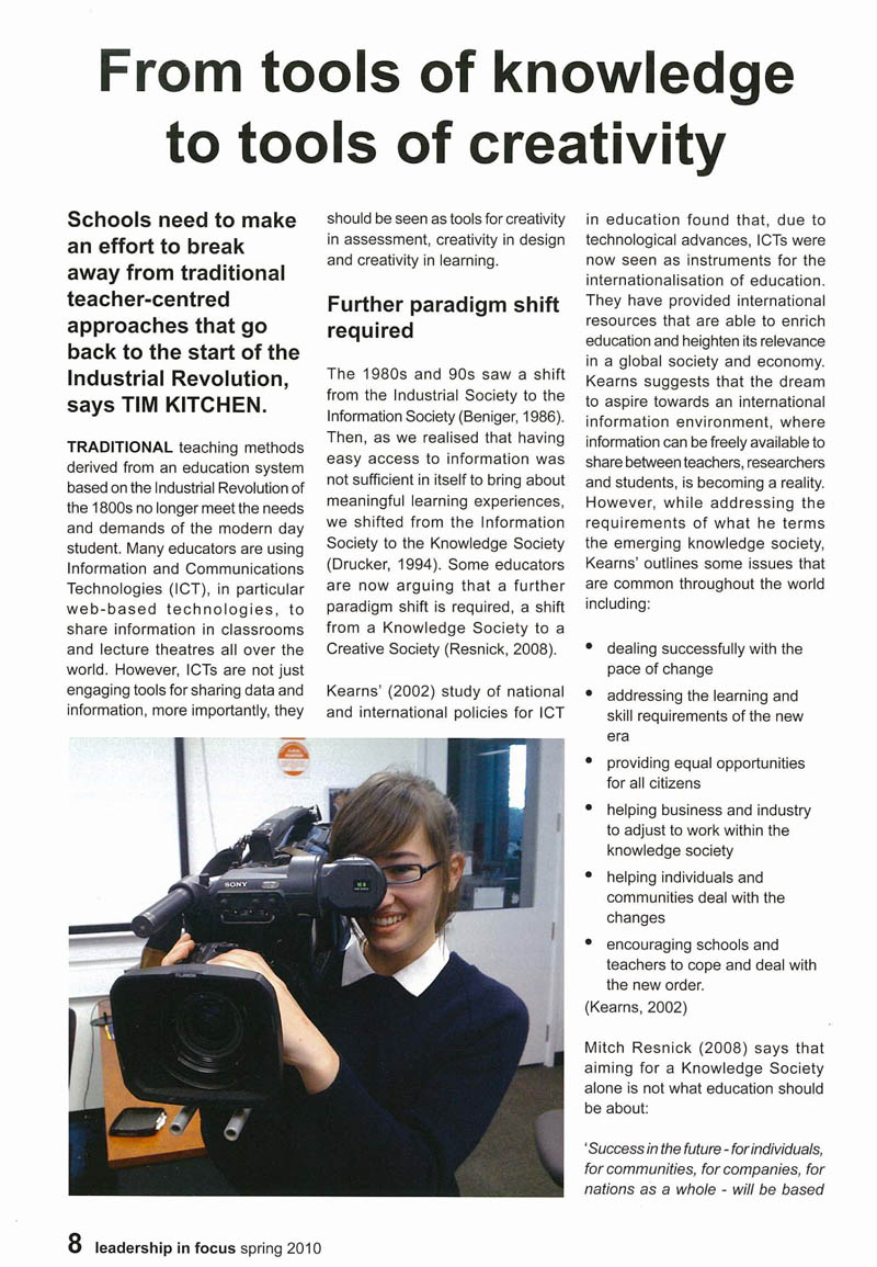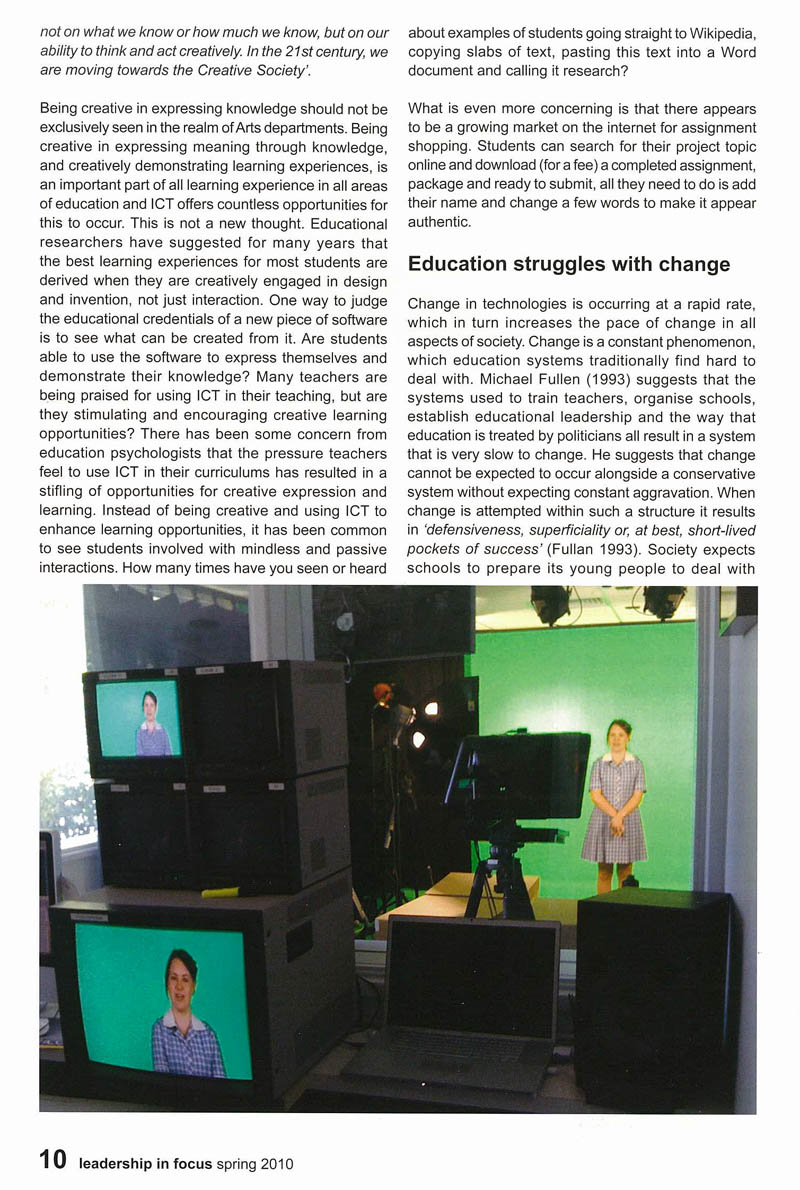 Click the image below to see my article in the 2010 Spring edition of Leadership in Focus – The Journal for Australasian School Leaders. Share this: Share on Facebook (Opens in new window) Facebook Share on X (Opens in new window) X Like Loading...